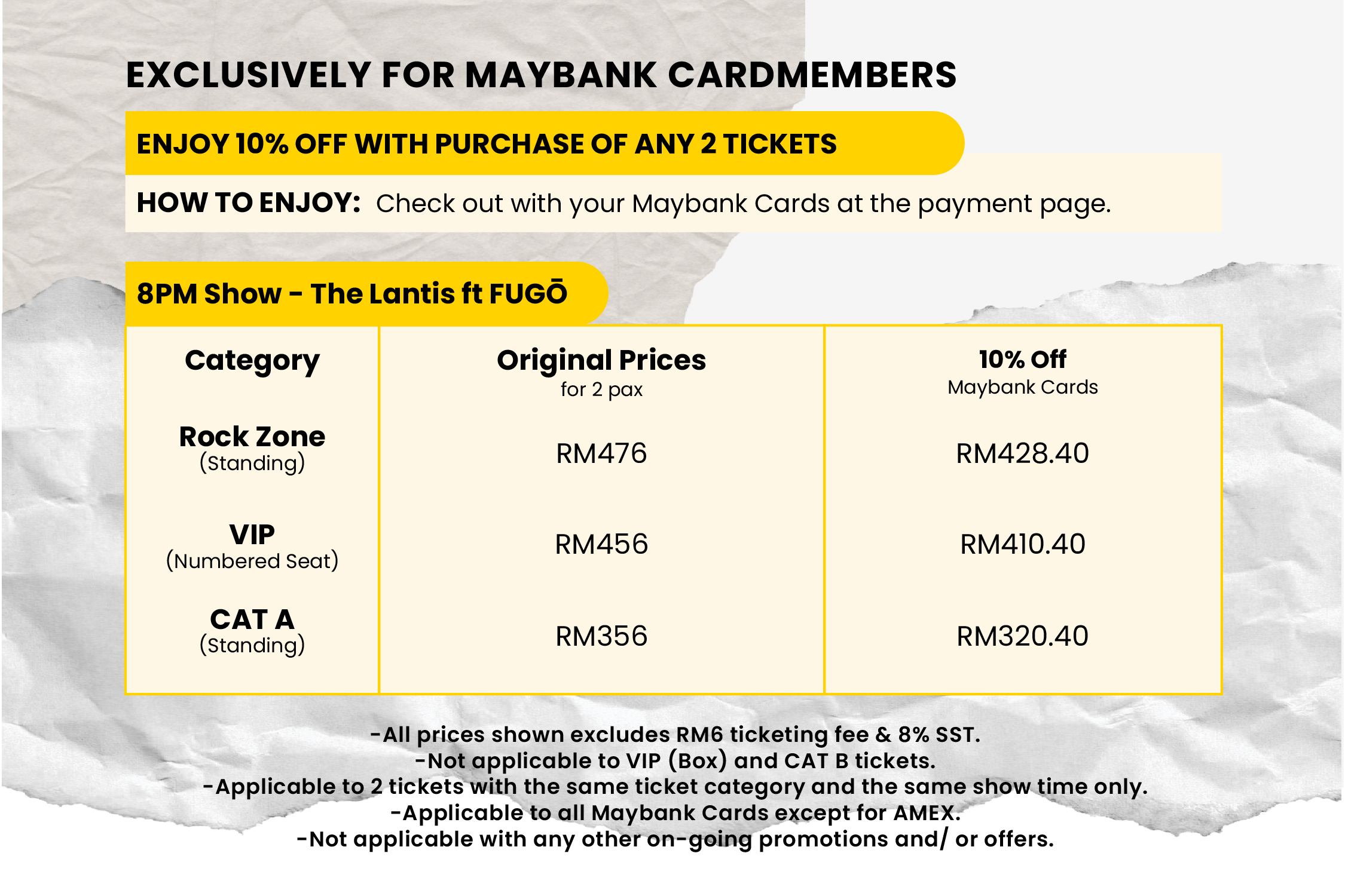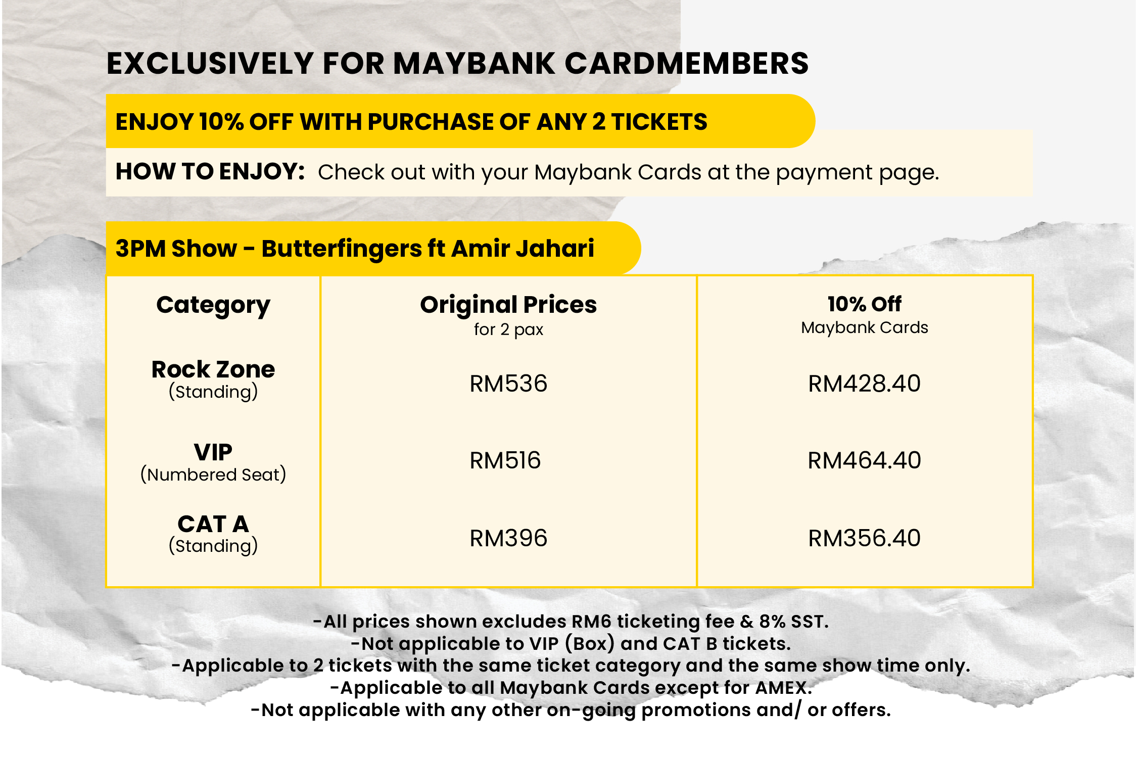 *All prices shown exclude RM6 Ticketing Fee & 8% SST